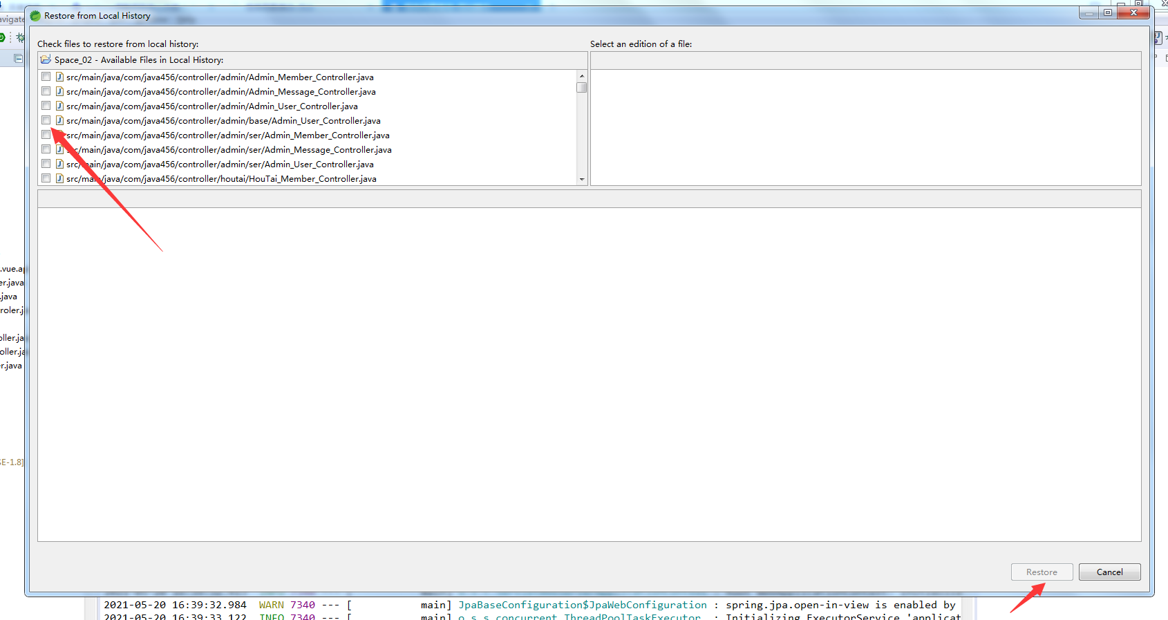 可以选择要恢复的文件。然后点击 Restore