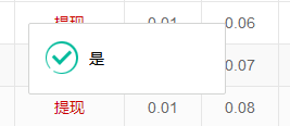 1 2 3 4 5 6 7 8 9 10 11 | //设置此id为 提成完成 function tixian_success(id){ layer.confirm('是否要设置打款完成?', { btn: ['是','取消'] //按钮 }, function(){ layer.msg('是', {icon: 1}); }, function(){ layer.msg('取消', {icon: 2}); } );} |